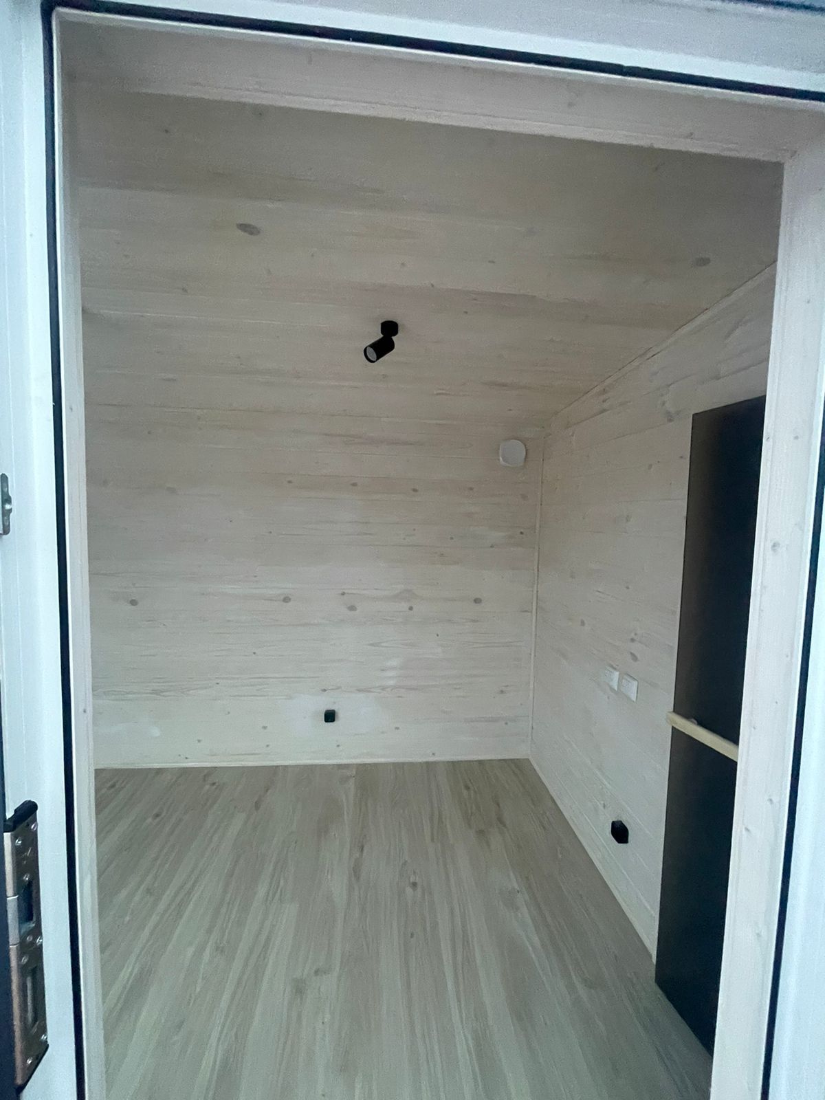 У нас свое теплое производство, поэтому мы можем строить круглый год без потери качества ( влага не попадет на доски и утеплитель).