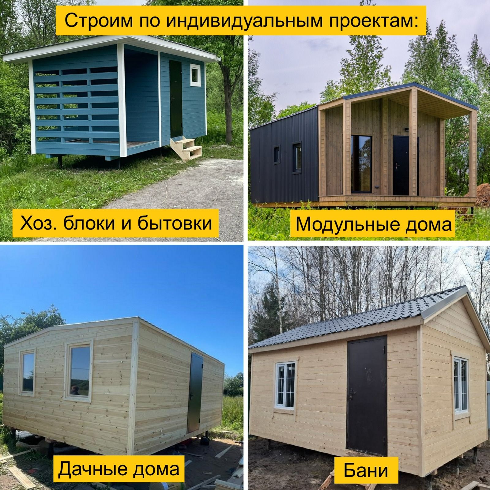 У нас свое теплое производство, поэтому мы можем строить круглый год без потери качества ( влага не попадет на доски и утеплитель).